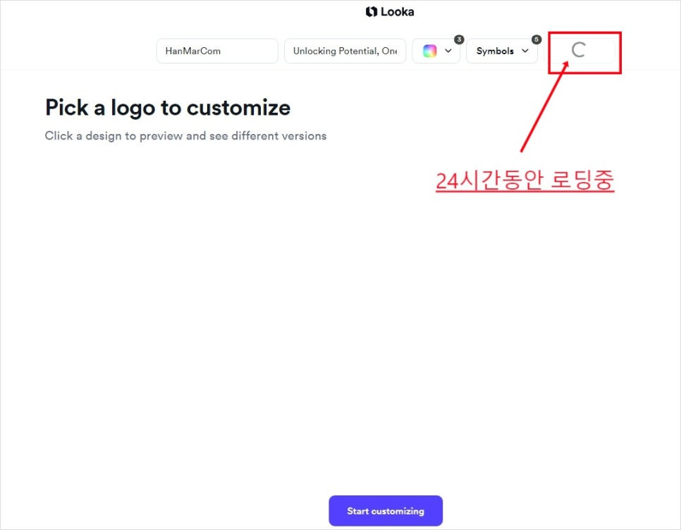 로딩 시간이 길어 아쉬운 경험을 했답니다. 저처럼 기다림에 지치실 수도 있는 분들은 Looka외에도 여러 로고